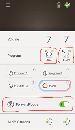 SmartSound iQ with Scan Technology: The scan technology is automatically listening to the surrounding sounds, and it adapts or changes the settings depending on the environment. There are six scenes in total: Quiet, Speech, Speech in Noise, Noise, Music, and Wind.