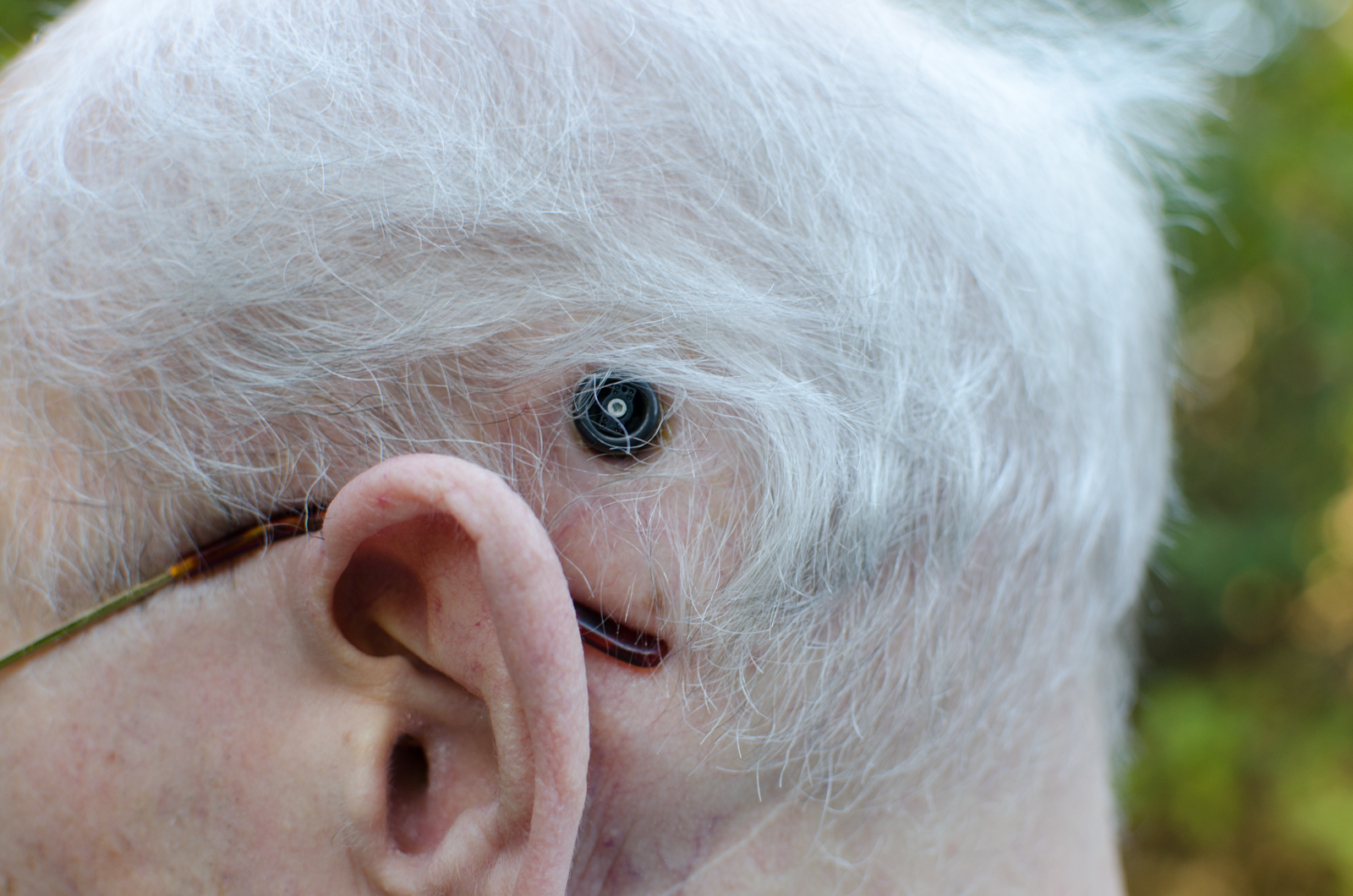 It took me some time, research into the marketing materials, rudimentary observation of others with the two systems, and finally serious thought to make this decision. I concluded that it made sense to opt for a “generic “ device such as the Ineraid. There were no implanted electronics that could break or hinder upgrades. All of the electronics existed *outside* of the body. The external hardware is connected to the implanted electrode array via an outlet that protrudes through the scalp. This outlet, working like a wall socket, is called the percutaneous pedestal. This meant that the hardware *and* software was outside the body, in the hands of developers. I decided simple “plug and play” was the way to go. I would have easy opportunity to try any of the latest technologies. Little did I know that the world was going to move to implanted electronics so quickly. And little did any of us know that that Ineraid, with the same low infection rate as other implants, would not gain FDA approval for the reason of infection risk.