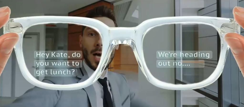 Startup company Xander is developing a clear augmented-reality display that clips onto your eyeglass frames. It performs live transcription so that you can read what people are saying.