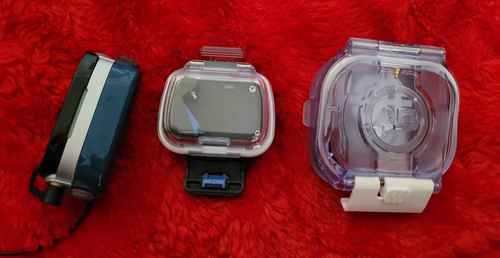 Neptune (left), M Waterproof Battery (center), and AquaCase for Q70 and Q90 (right) Photo by Susan Pham