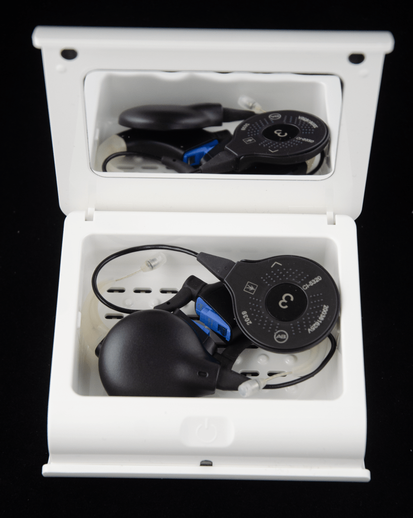 The Cedis dryer supplied with the kit is much smaller than the Zephyr which came with the Q series. Two M90 processors with headpieces can fit in the compartment without undue flexing of the headpiece cable. The charger uses a mini (not micro) USB connector. While the dryer and battery chargers usually remain plugged in, so you don’t have to fiddle with micro and mini USB connectors on a regular basis, a system where all the accessories use USB-C would be welcome.