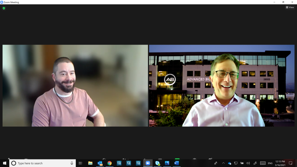 David (L) and Howard (R) on a video call with hands-free Bluetooth connections to the computers on both ends!
